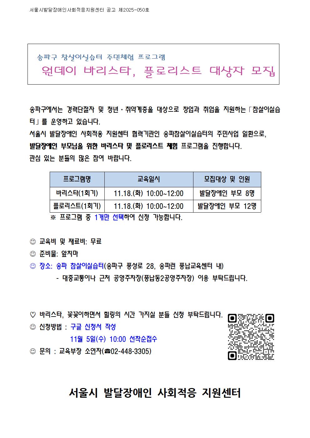송파구 참살이실습터 주민체험 프로그램 대상자 모집