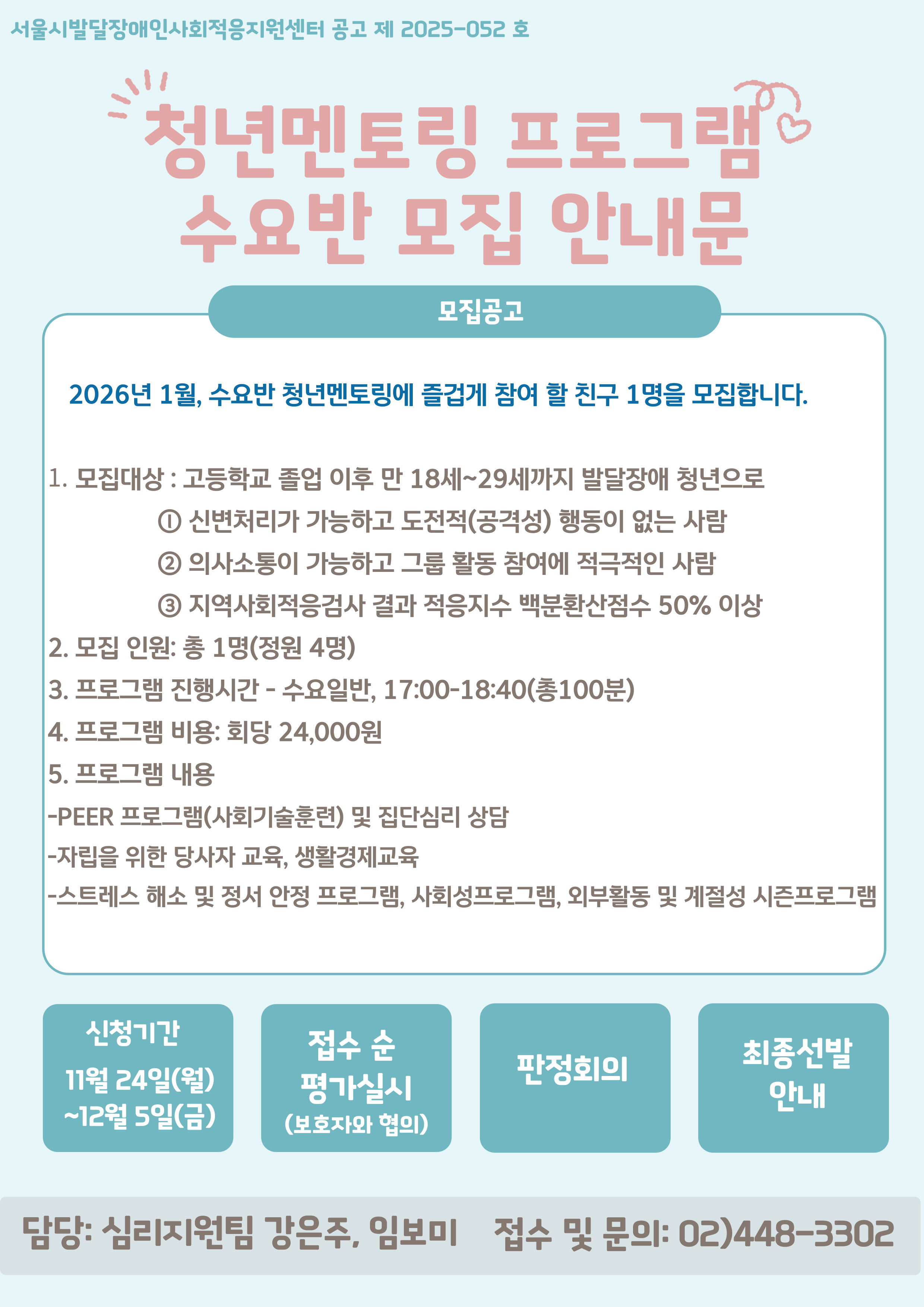 2026년 청년멘토링 수요반 인원충원 모집안내