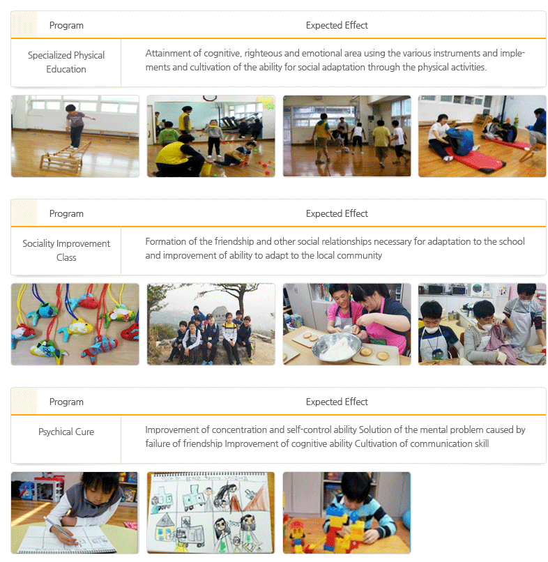 SJSC, as a integrated educational institution for disabled children with development disorder and intellectual disorder as well as abled children which was first established in Korea, is willing to lead the children who have unlimited possibility and flexibility to grow up in physically, emotionally and socially right way through physical, medical and social programs.
