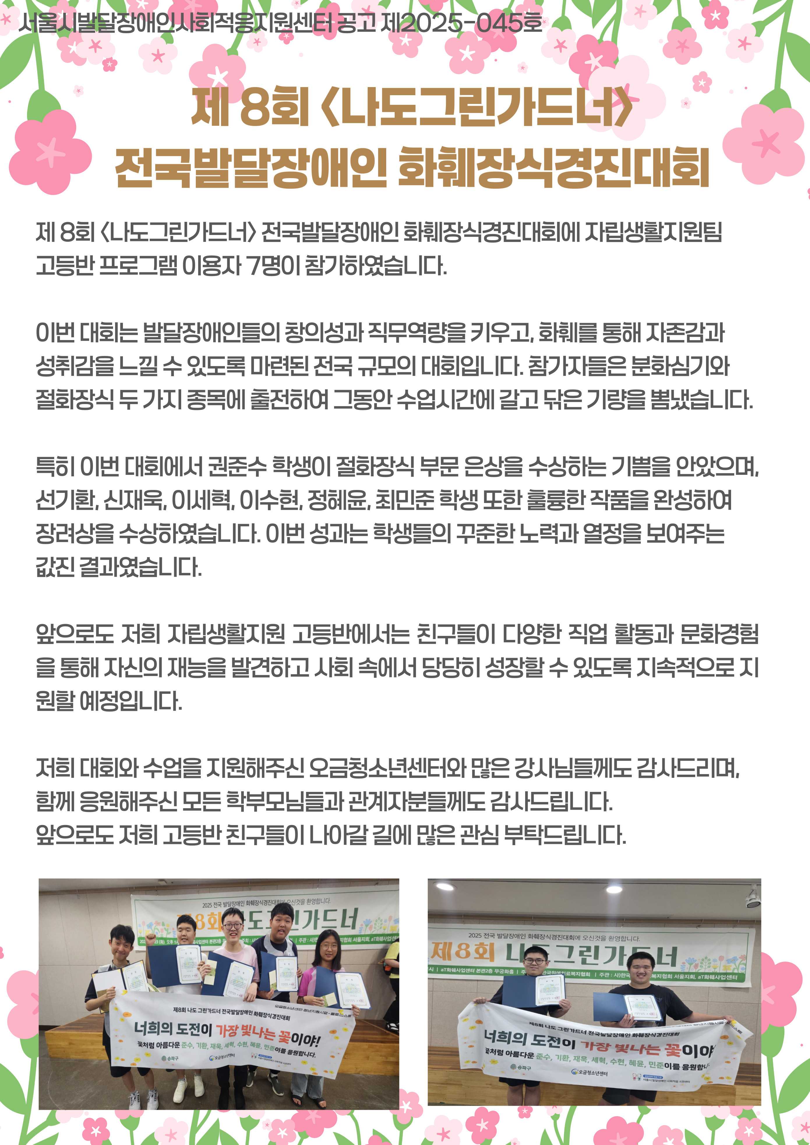 제 8회 <나도그린가드너> 전국발달장애인 화훼장식경진대회 수상 안내